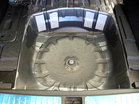 | 画像のように外したシェルフ部分に敷く シートベルトやアンカー部に注意 |