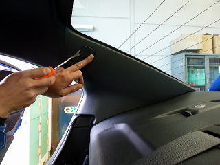| あとはクリップ固定なので外すだけ バックだけでなくサイドや上部の 脱着も必要な車種有り |