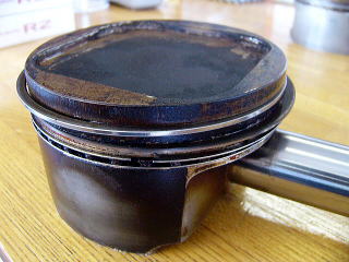 | カーボン溜まってます! | ピストンのみ<軽く洗浄済み> | リングも磨り減ってます・・・ |