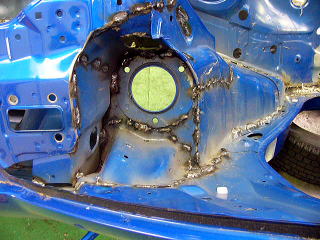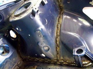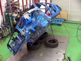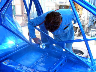 ここまでやると徹底的にやるしかありません(笑) しかし、決して闇雲に溶接しているわけではありませんよ! これまでの経験から『ここ』という部分を重点的に溶接の順序や間隔を考慮し、仕上がって走った時をイメージしながらの作業となります。 非常に格好良い表現ですが、常に完成形を意識していることは本当です。 いかにドライバーに満足してもらえるかがこの作業でかなり決まってしまいます。 足も何もしっかりとしたボディから始まりますので、ここで手を抜くことは出来ません。 |