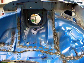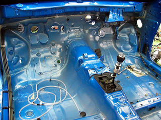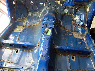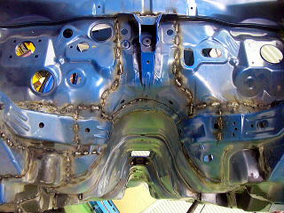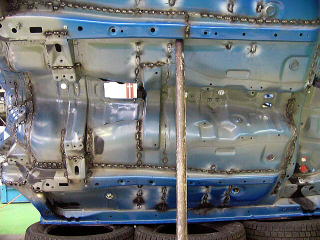 フロア 今回はJ項規格のロールゲージなので、ボディーを全部補強してます。 海外製品(ホモロゲモデル)はボディー事態の改修も多く、屋根を剥がしたり、多くの部品をさらに剥がしたりとJ項比較では作業がてんこ盛りです。 |