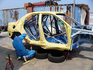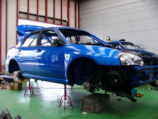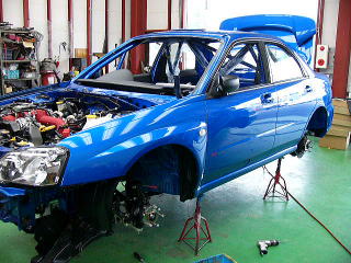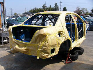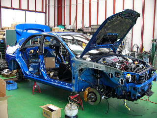 いざ、車検へ!! 車検取得後に、ラリー装備品の装着作業となります。 ショック・コンピューター・ガード類・小物部品などまだまだ作業はたくさん残っておりますし、ここからが本格的な競技車への製作段階となります。 05/06/23よりラリーJAPANへの参加受付も始まりましたので、いよいよその時期が近づいてきました。 |