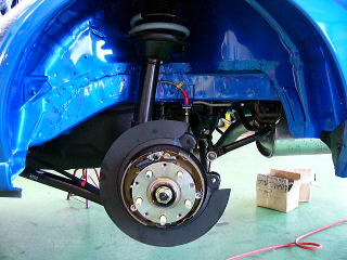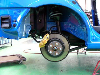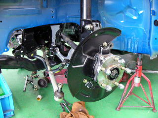 組付け作業 フロントサスペンション コチラも変更はブレーキホースくらいです。 この後の新規車検まではノーマルサスペンションとなります。 |