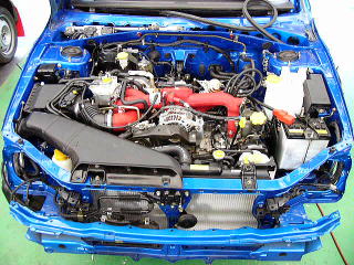エンジン STI製品のインテークダクトを装着 エンジンマウントもグループN専用品に交換するなどで武装 レギュレーションに合致させる関係もあり、主にSTI製品を使うことが多くなるのが、グループN車両の特徴です。 |