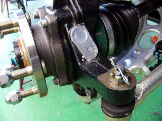 組付け作業 フロント周り まさにEタイプの変更の核心部分です! ABSは取り外してしまうので、穴はメクラします。 タイロッドエンドの割りピンも作業性を考慮したクリップに変更! こうした細かい処理が現場ではとても大切になります。 |