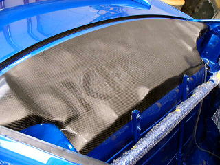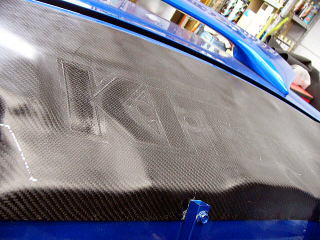外装装着 その2 ガラスは最終段階まで装着しない予定です。 現在リアのスピーカーボード(カーボン製)を試作しているので、部品待ちでもあります。 一般車両用と競技車両用(リアの減衰調整可能)の2種類で製品化する予定ですので、ご期待下さい。 |