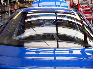 フロントガラス装着 インパネ周りの作業が完了しないとこの段階にこれないので、ほぼ最終段階の作業となります。 |