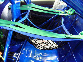 ヘルメットハンモック 名前の通り、ヘルメットや小物を収納するものです。 ラリー車両には必需品ですが、ロールゲージを付けた際にはどんな用途の方でもとても重宝する逸品です。 |