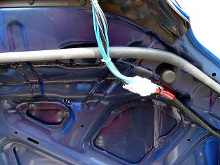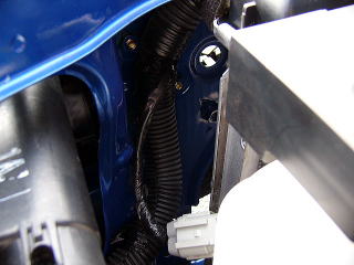 ライトポッド配線 夜しか使わないライトポッドは通常は外しておりますので、配線がボンネットの裏面に固定した状態となります。 ※この状態は結線したときです。 |