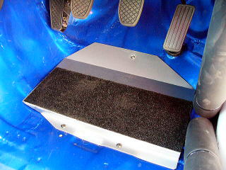 ペダルプレート 確実な操作が出来るようにペダルしたのフロアを平らにいたします。 滑り止めも施行しておりますので、雨等の状況下でも確実な操作が可能となります・ ペダル本体にも滑り止めの加工を施しますが、この時点ではドライバーの要望も聞いていない為、施行しておりません。 |