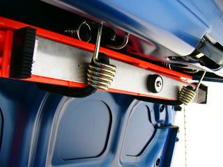 ズース 裏面 ズースの受け側にはS字型のピンを固定しておく事で、固定が可能になります。 ボンネットに穴を空けるときは『集中』です! |