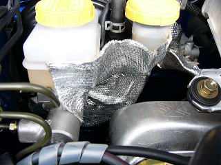 エンジンルーム 対策その1 長い距離を走行するラリーではどうしても熱対策は必要になります。 その一つがブレーキとクラッチのシリンダー部分への耐熱対策です。 エキマニ等は市販状態ですので、特に対策はいたしません。 |