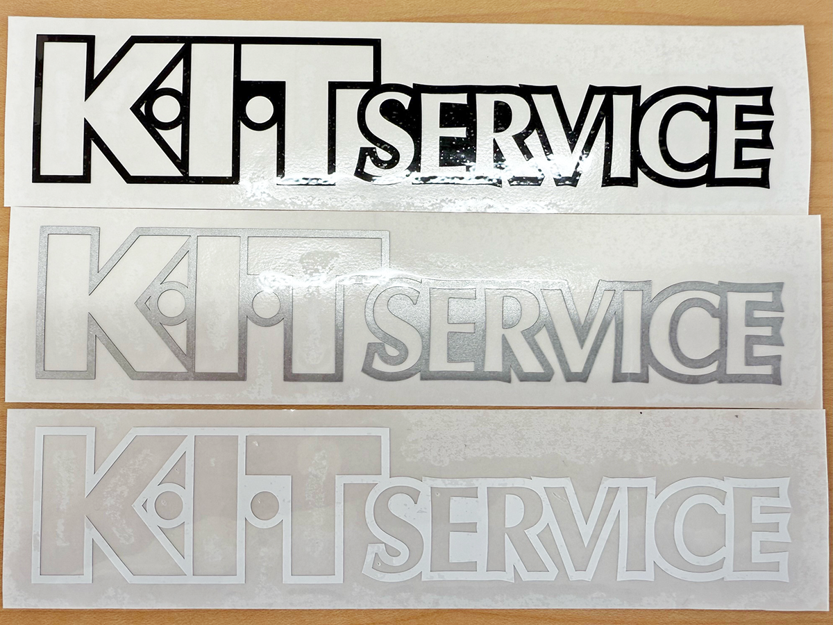 KITservice ステッカー 切り文字 ホワイト・ブラック・シルバー W200・W150 オリジナル商品 2025.05.09 KITサービス ステッカー色3種(ブラック・シルバー・ホワイト)サイズ W200 ¥1,500 税込 サイズ W150 ¥1,100 税込